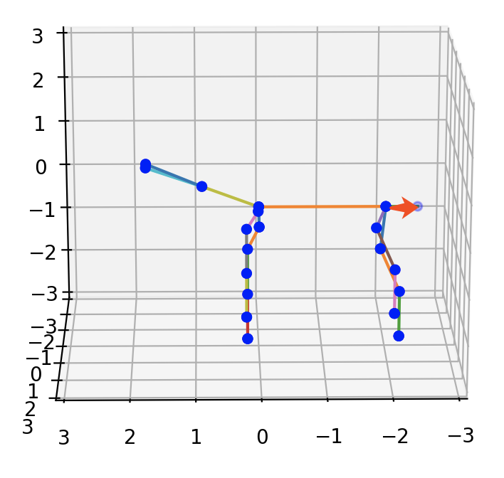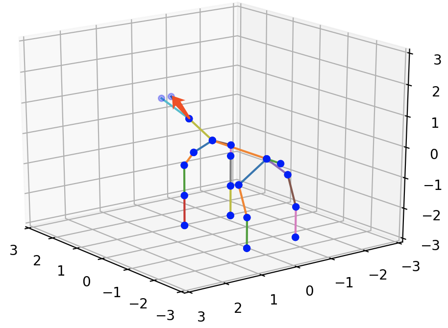 The following figures show the range and distribution of our synthetic dataset for each pair of joint connection. The left column shows the distribution and the right column shows the corrsponding position in the skeleton (marked by red arrow).