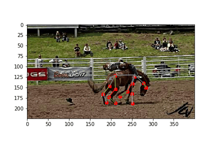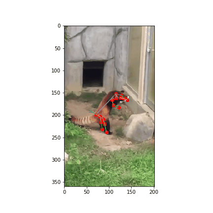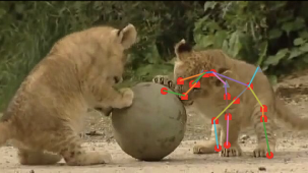 Here is the results of our framework on single frame images (i.e. without the temporal network): the three columns are namely: original image with skeleton overlaid, 2D projection of the skeleton and 3D skeleton (in a different view angle). All images in the following two sections are from TigDog dataset.
