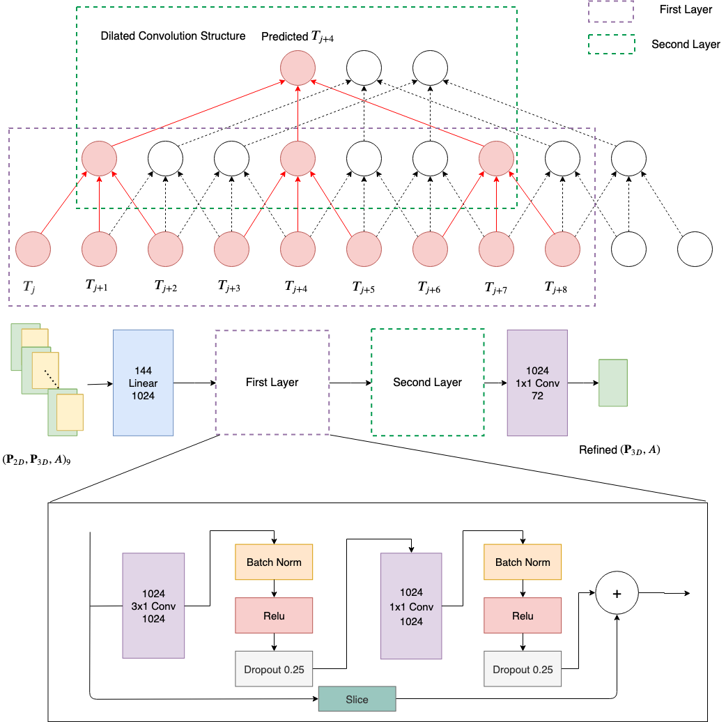 Following is the figure illustrating our frame architecture. In short, we take the landmarks of an animal in a video sequence as the input and pass through two separate deep neural network and output the predicted 3D skeletons.
